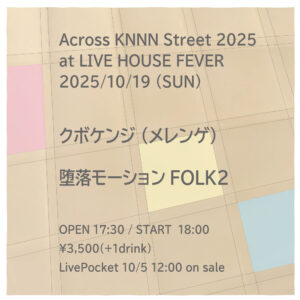 10/19(日)、FEVERにて開催されるイベント「Across KNNN Street 2025」にクボケンジの出演が急遽決定!